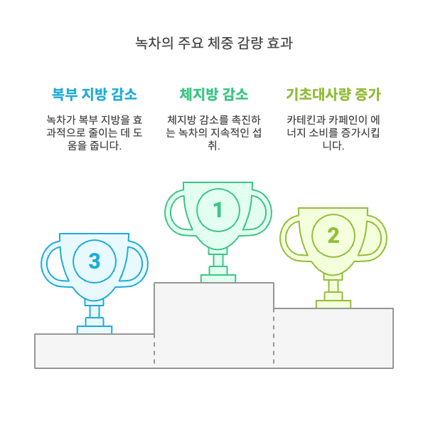 🔹 복부 지방 감소: 특정 연구에서는 녹차 섭취가 복부 지방을 줄이는 데 효과적이었다고 보고되었습니다.