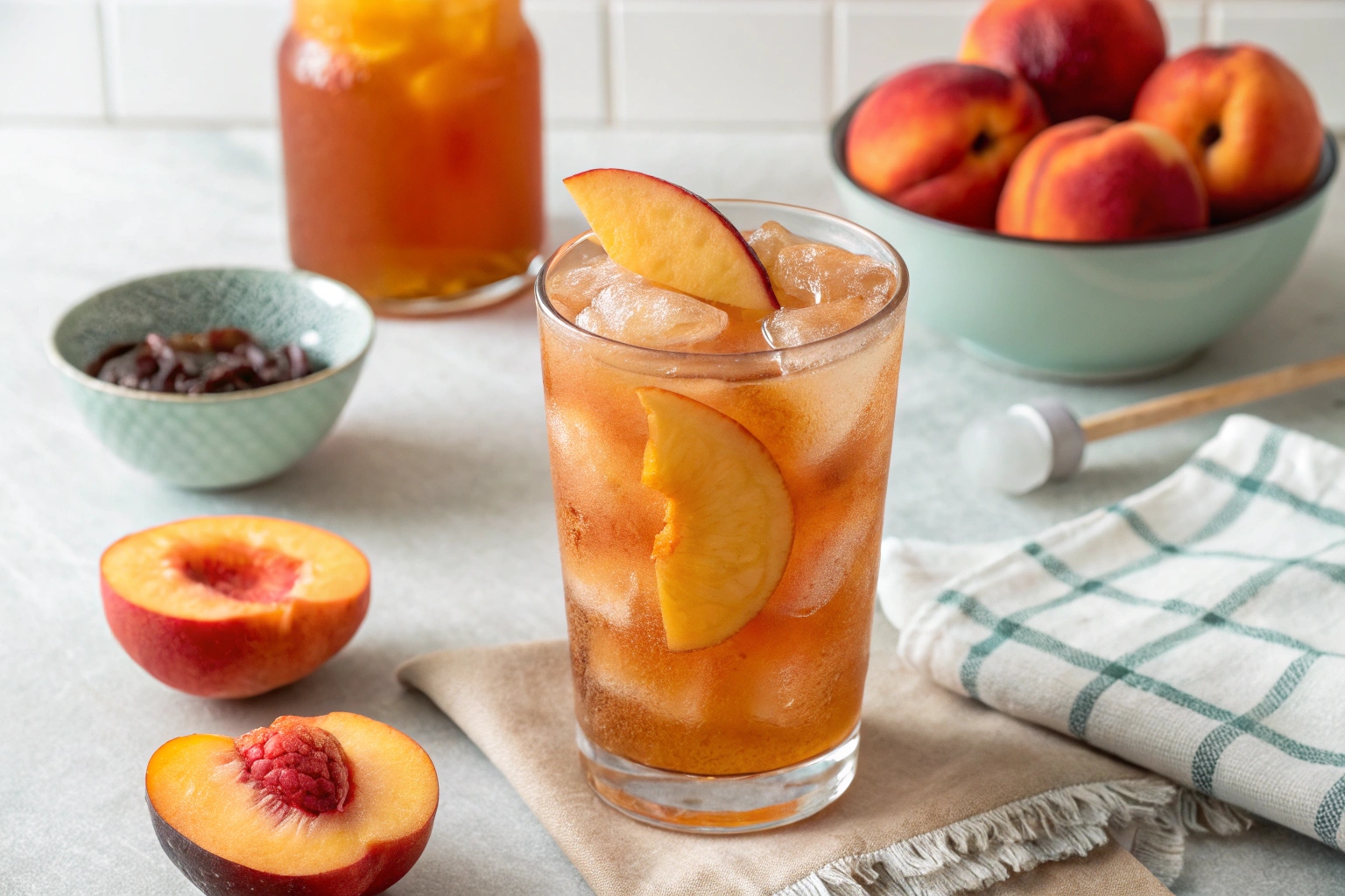 복숭아 아이스티는 따뜻한 봄날과 완벽하게 어울리는 차입니다. 달콤한 복숭아 향과 시원한 얼음이 조화를 이룹니다.